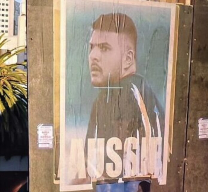 About 40 knock-off posters, featuring the accused shooter with the word Aussie beneath his face, appeared across the CBD last week, forcing City of Melbourne employees to work “around the clock” to remove them.