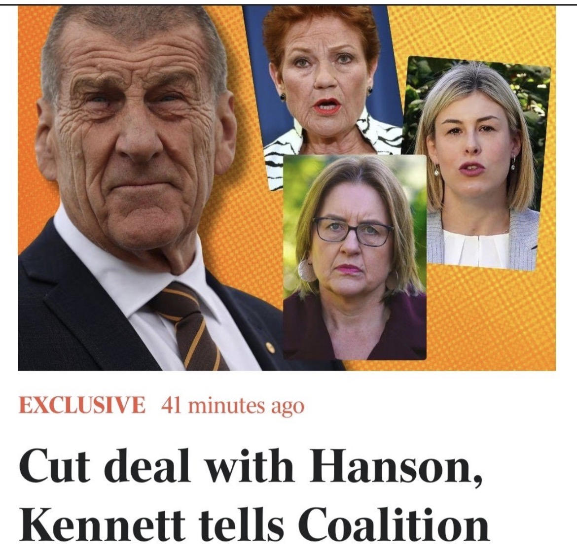One Nation will cripple its own reputation and electoral viability by having anything to do with the Liberal Party. Support is surging for One Nation because Aussies perceive it as representing our interests. The Liberal Party is tanking because it has betrayed us.