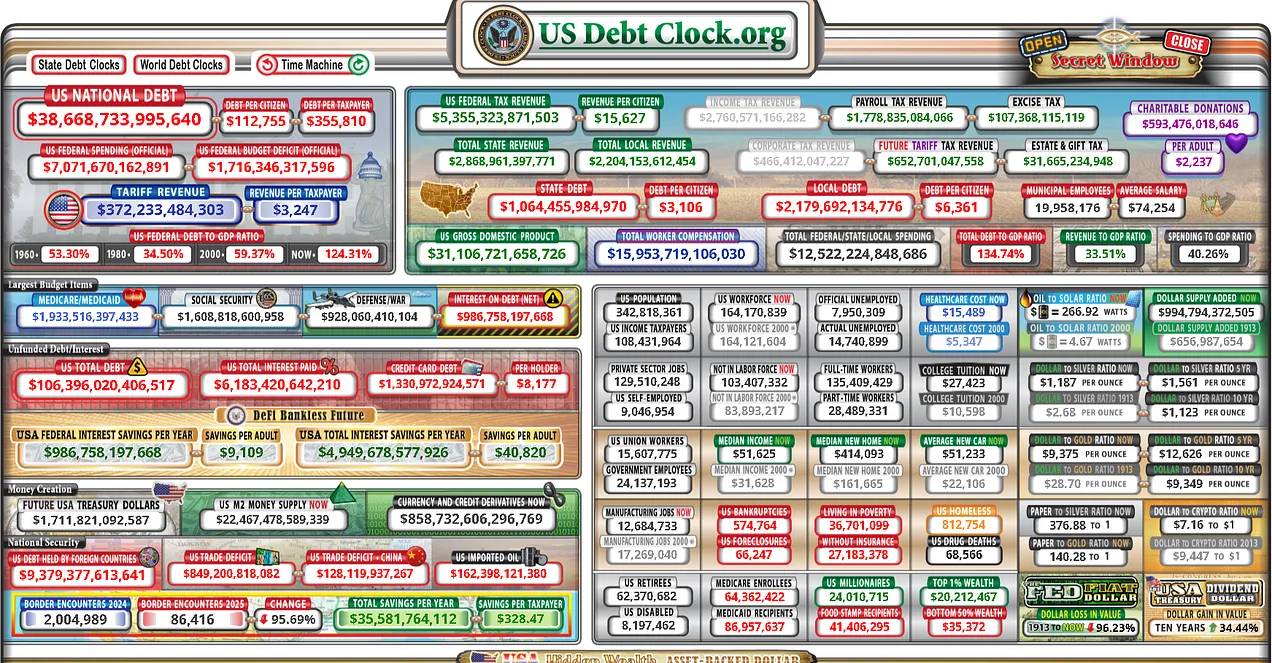 This is the US debt clock, but you can substitute any ‘advanced’ or ‘developed’ economy you like (or hate) in the graphic below.